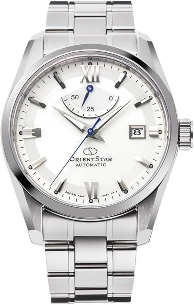 オリエントスター RK-AU0006S 自動巻き オリエントスターの人気のホワイト文字盤が入荷! シンプルながら実用性抜群な1本です。 ORIENT STAR STANDARD - 実用性とデザイン性を兼ね備えたORIENT STARの定番モデル その名にふさわしいORIENT STARの定番モデル。 様々なシーンで使いやすい"スタンダードモデル"として、シンプルかつ薄型なデザインを実現。デザイン性だけでなく、ORIENT STAR の特長でもあるパワーリザーブインジケーター・手巻き機能・秒針停止機能などの"使いやすさ"にもこだわりました。 ビジネスからプライベートまで、幅広いシーンで使いやすいアイテムです。 シンプルなデザインなので、フレッシャーズの方にもおすすめです。